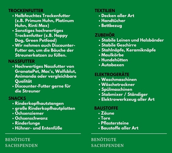Wir möchten Helfen! Neben Geldspenden für Tierarztrechnungen