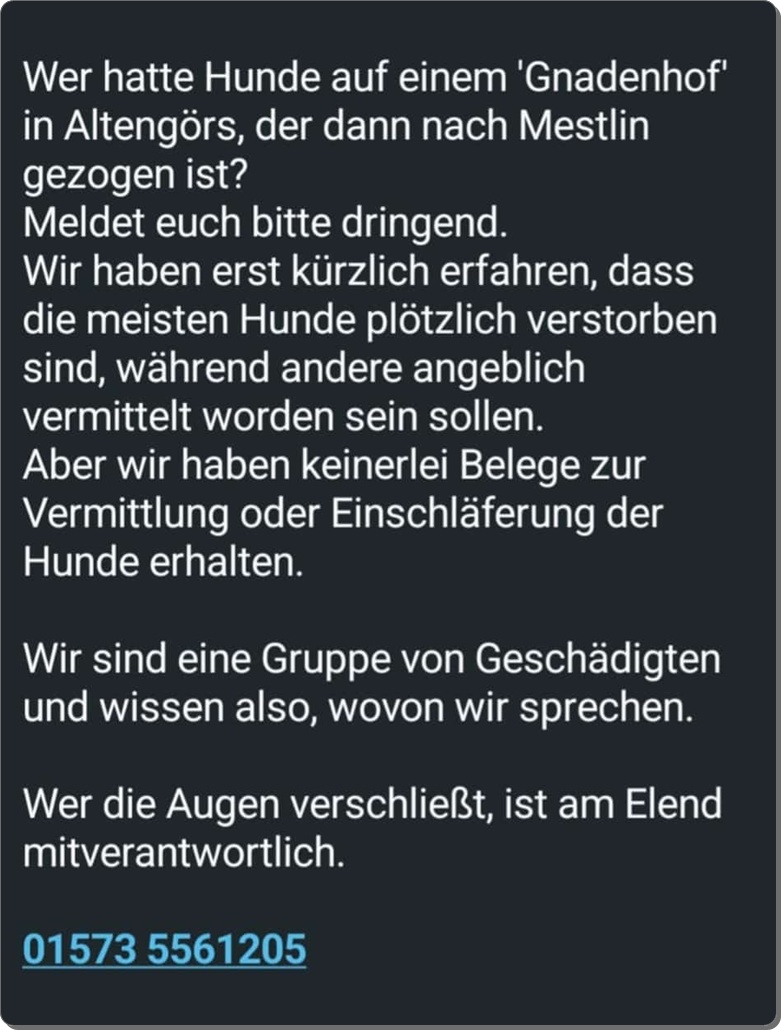 Wer hatte einen Hund auf dem Gnadenhof in Altenförs - bitte melden !!!!! - Aufrufe - Treuepfoten