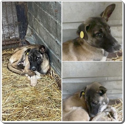 Baku,fast noch ein Welpe, eingesperrt mit älteren Hunden.
