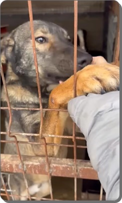 Als Max die Tierschützer sieht, läuft er schnell an das Gitter.