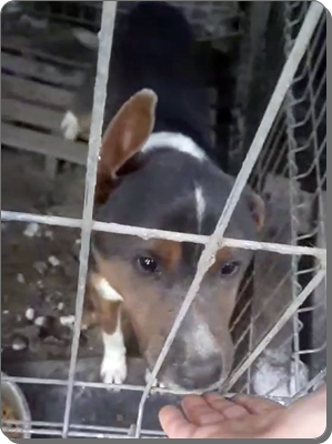 Sie sitzen in Zwingern ohne Stroh und bei dem weißen Hund